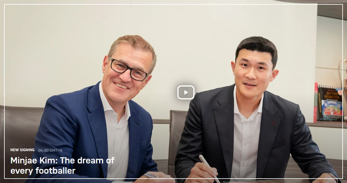 바이에른 뮌헨 구단은 현지시간 7월 18일 이탈리아 나폴리와의 협상을 마치고 드디어 김민재 선수를 영입을 확정했다고 발표 했다.