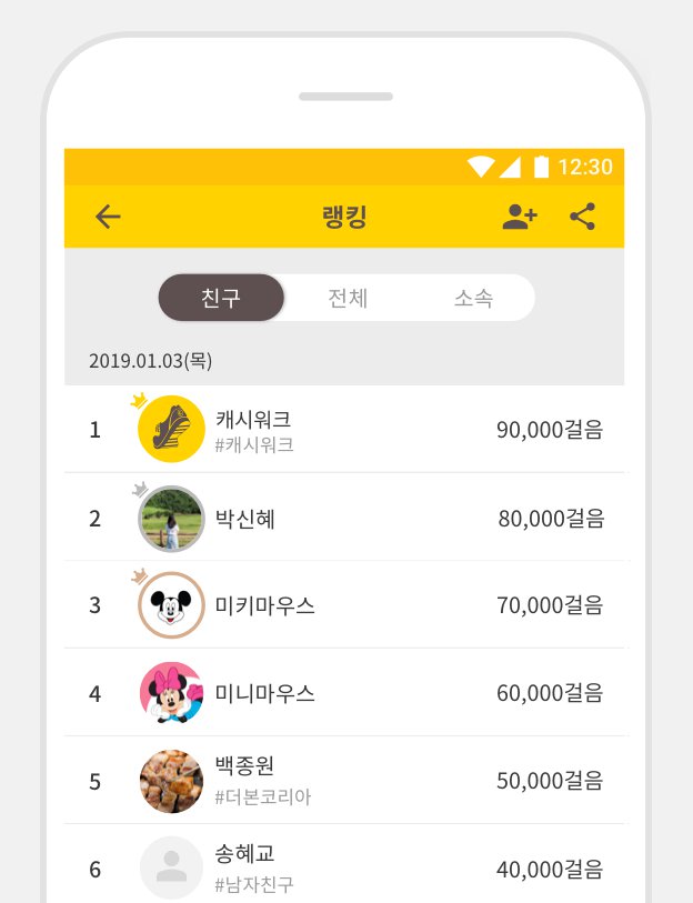 랭킹 : 친구들은 오늘 얼마나 걸었나?나의 걸음수와 비교하며 ​승부욕 발동!