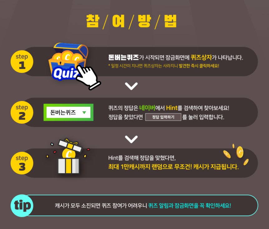 Step 4. 캐시가 모두 소진되면 퀴즈 참여가 어려우니 퀴즈 알림과 잠금화면을 꼭 확인한다.