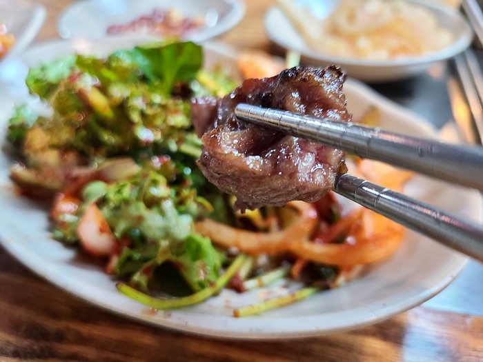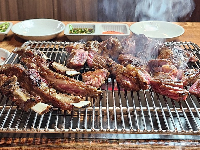 양꼬치를 먹을까도 생각했지만, 초벌구이를 해서 나오는 양갈비를 주문했고, 생각보다 훈연의 맛이 깊어 먹는 것도 좋았다. 정확한 주문메뉴는 왕양갈비이다.