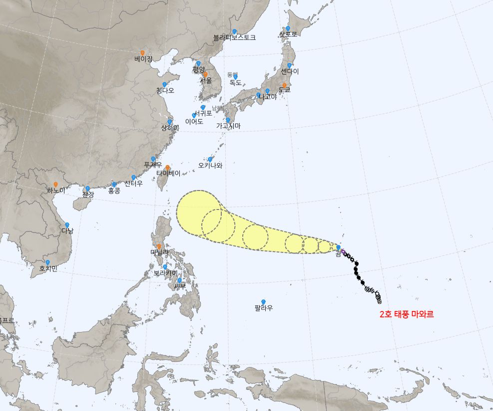 작년 우리나라에 어마어마한 피해를 준 힌남로 태풍과 닮았다고는 하지만, 제2호 마와르 태풍은 한반도를 향하는 것이 아닌 필리핀, 대만, 중국에서 소멸하는 것을 원한다.