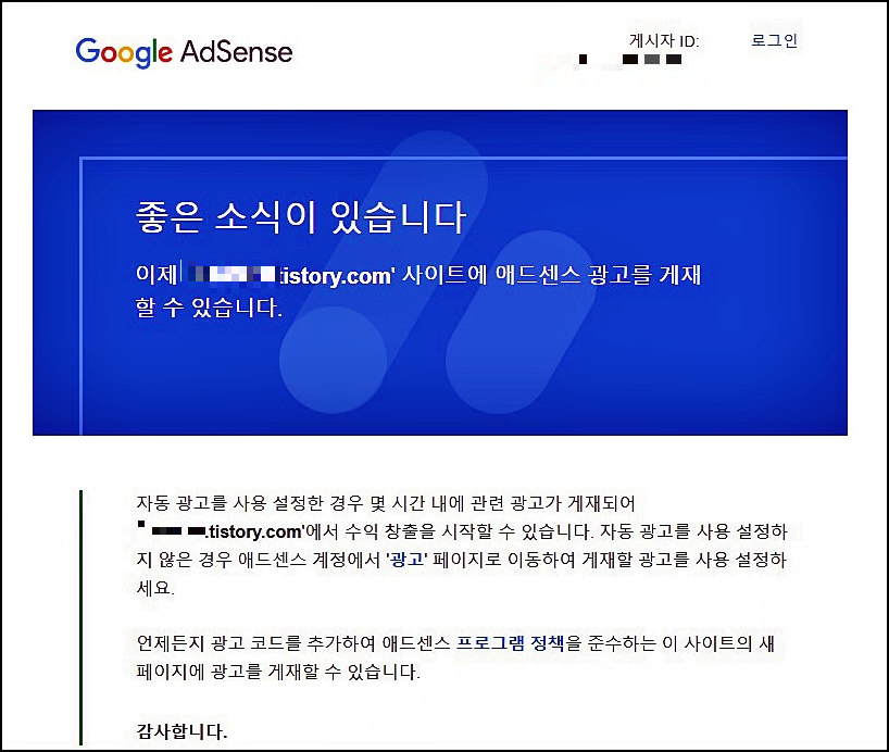 구글 애드센스 승인 "좋은 소식이 있습니다"