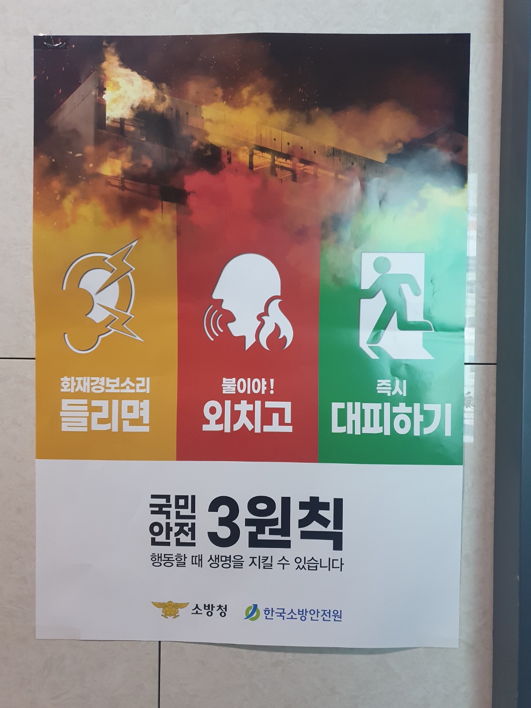 소방청과 한국소방안전원에서 1월 들어서 아파트 입구에 국민안전 3원칙이라는 홍보 게시물을 붙여 놨습니다.